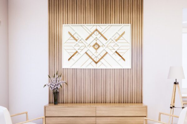 This collection is inspired by Art Deco style patterns designed in the our Nexus collection aesthetic. Our Nexus collection is an Interlaced wood art involving carving, adding mass, textures, and colors in rhythmic balance. Each piece showcases carving, rich wood grains, textures, and harmonious colors, creating a perfect balance of artistry and craftsmanship. It’s a very unique style of art that cannot be found anywhere else. This original art is designed and handcrafted by Preethi, an architect and interior designer.