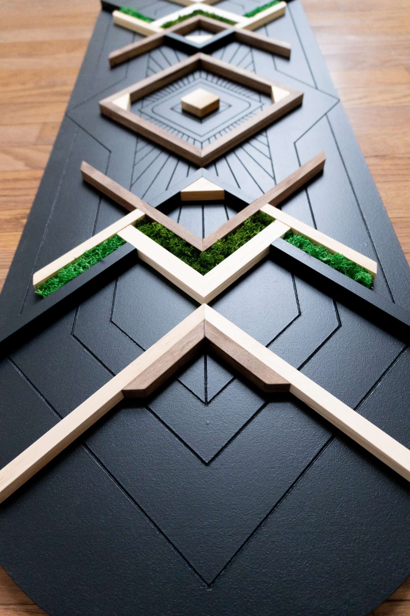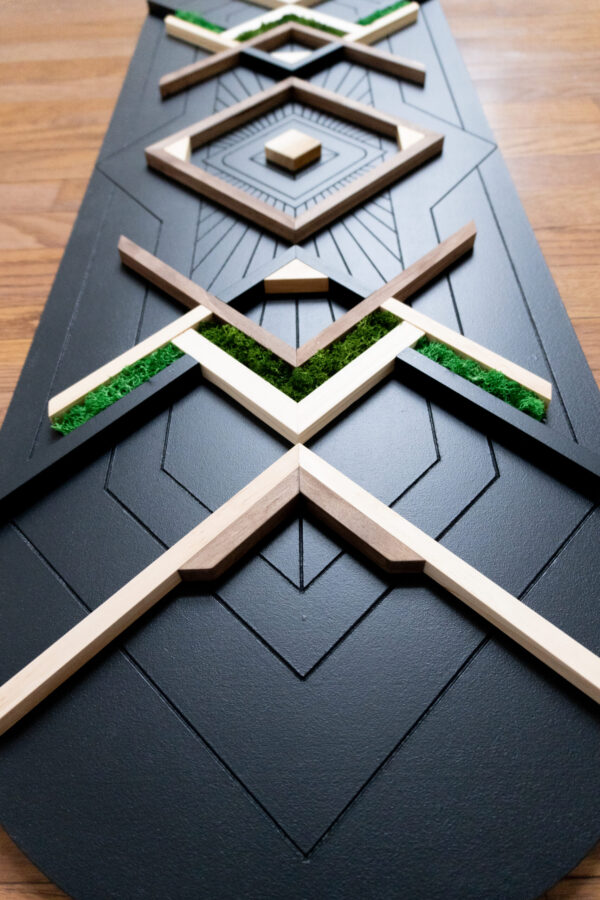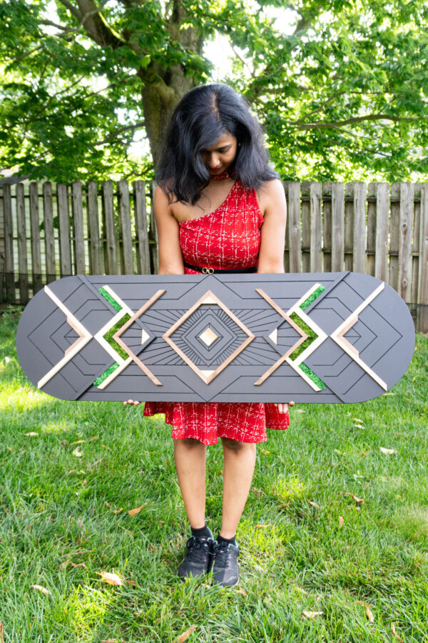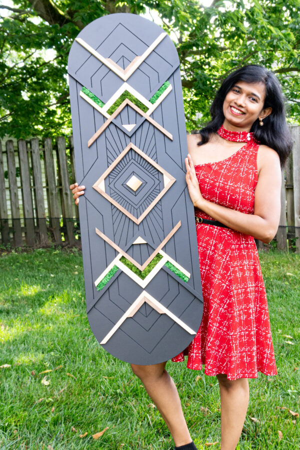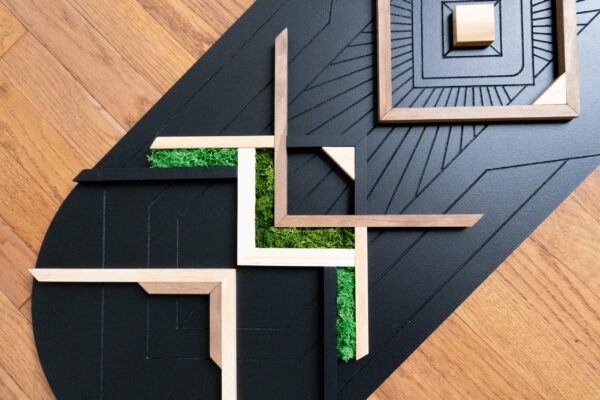 Interlaced wood art involving carving, adding mass, textures, and colors in rhythmic balance. Each piece showcases masterful carving, rich wood grains, textures, and harmonious colors, creating a perfect balance of artistry and craftsmanship. It’s a very unique style of art that cannot be found anywhere else. This original art is designed and handcrafted by Preethi, an architect and interior designer.